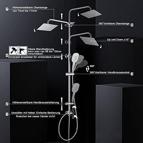 Verleihen Sie Ihrem Badezimmer mit diesem Duschset nicht nur einen Hauch von Luxus, sondern auch Funktionalität und Sicherheit. Egal ob Erfrischung nach einem langen Tag oder ein entspannendes Wellness-Erlebnis am Wochenende – dieses Duschsystem ist die perfekte Wahl für jeden Anlass!