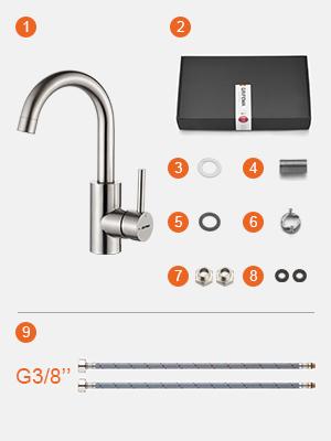 Die Lieferung umfasst flexible 50-cm-Schläuche (G ⅜), Dichtungen und alles nötige Montagematerial, was eine werkzeugfreie Installation in etwa 10 Minuten ermöglicht. Kompatibel mit Standardanschlüssen und gängigen Waschbecken-Wasserhahn-Installationen, eignet sich diese Armatur sowohl für Renovierungen als auch für Neubauten.