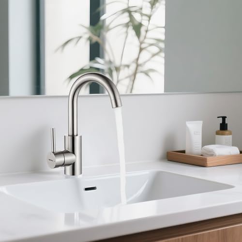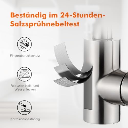 Das robuste Material aus hochwertigem Edelstahl garantiert eine kratzfeste und pflegeleichte Oberfläche. Diese Armatur ist nicht nur langlebig, sondern lässt sich auch mühelos reinigen. Für eine nachhaltige Pflege sollten aggressive Korrosionsreiniger vermieden werden. Die Materialien sind speziell für den Einsatz in Badezimmern und als Wasserhahn für Waschbecken konzipiert, um Ihnen sowohl Stil als auch Funktionalität zu bieten.