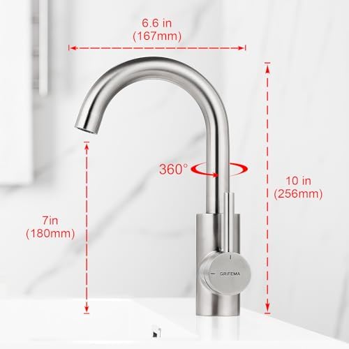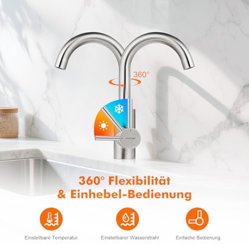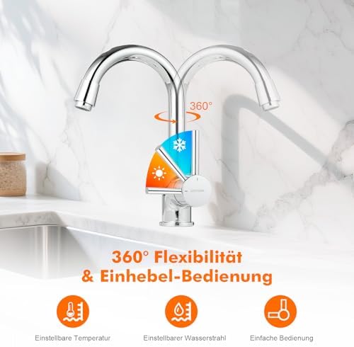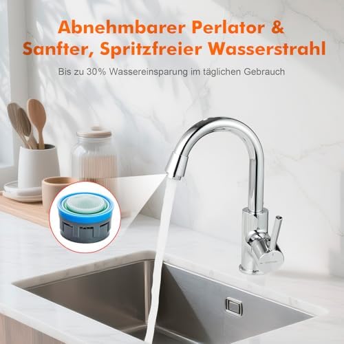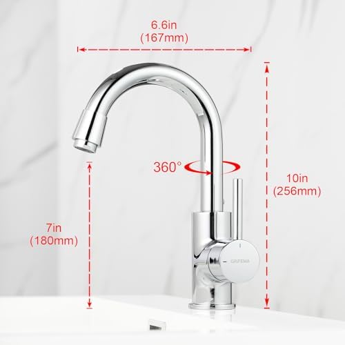 Die elegante geschwungene Schwanenhals-Form dieser Armatur überzeugt nicht nur durch ihr ästhetisches Design, sondern bietet auch einen hohen Auslauf von 180 mm. Dies ermöglicht Ihnen mehr Freiraum über dem Waschbecken, ideal für die tägliche Nutzung. Die um 360° drehbare Konstruktion sorgt für zusätzliche Flexibilität, sodass Sie die Armatur optimal in verschiedenen Szenarien verwenden können, sei es im Hauptbadezimmer, im Gäste-WC oder in kleinen Waschräumen.