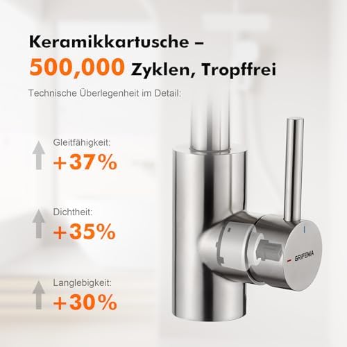 Dank des hochwertigen Keramikventils ist diese Armatur auf über 500.000 Zyklen getestet, was eine trägerfreie und geräuscharme Nutzung gewährleistet. Ideal für stark frequentierte Familienbäder oder moderne Waschbeckenarmaturen – die Armatur bietet die benötigte Robustheit, um all Ihre Anforderungen zu erfüllen. Durch die flexible Installation wird ein Verwickeln der Zulauf-Schläuche vermieden, wodurch die Montage vereinfacht wird.