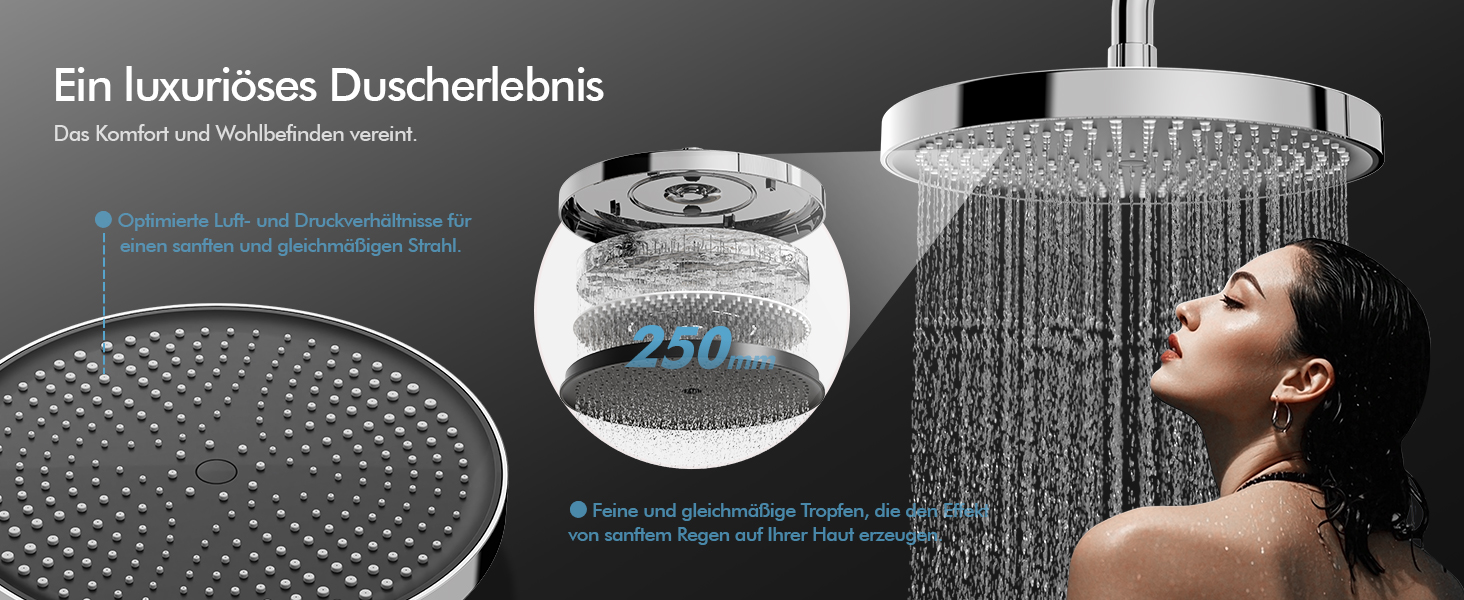 - Luxuriöse Regendusche: Mit einem großzügigen 25 cm Duschkopf genießen Sie Spa-ähnlichen Komfort und perfekten Wasserfluss.