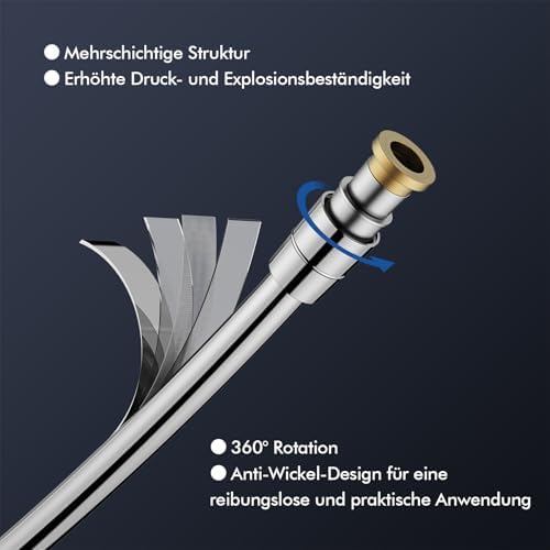 - Sicherheitsmerkmale: Der hochflexible PVC-Schlauch mit Edelstahlkern garantiert Langlebigkeit und Sicherheit im Duschbereich.