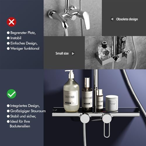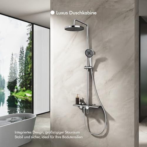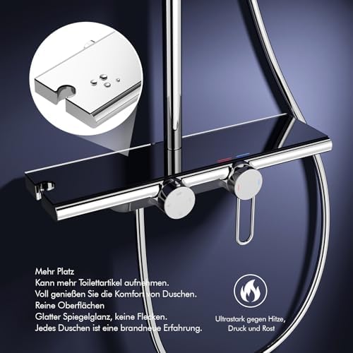HOMELODY Duschsystem mit 5 Strahlarten – Komplettset für stilvolle Badezimmer mit Armatur und Glasablage