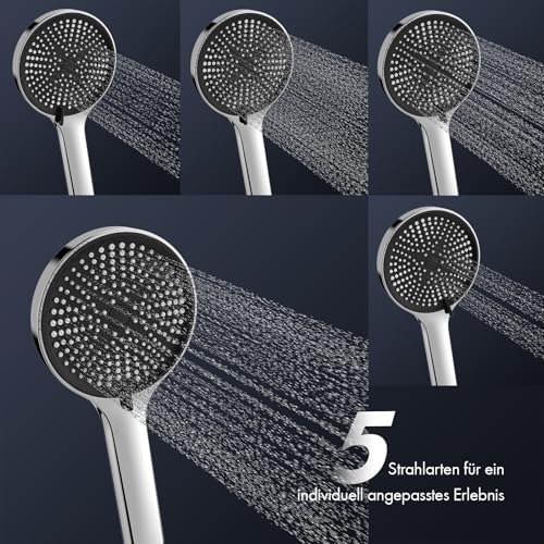 - Individuelle Duschoptionen: Die Handbrause mit 5 Sprühmodi sorgt für ein maßgeschneidertes Duschvergnügen, passend zu jeder Stimmung.