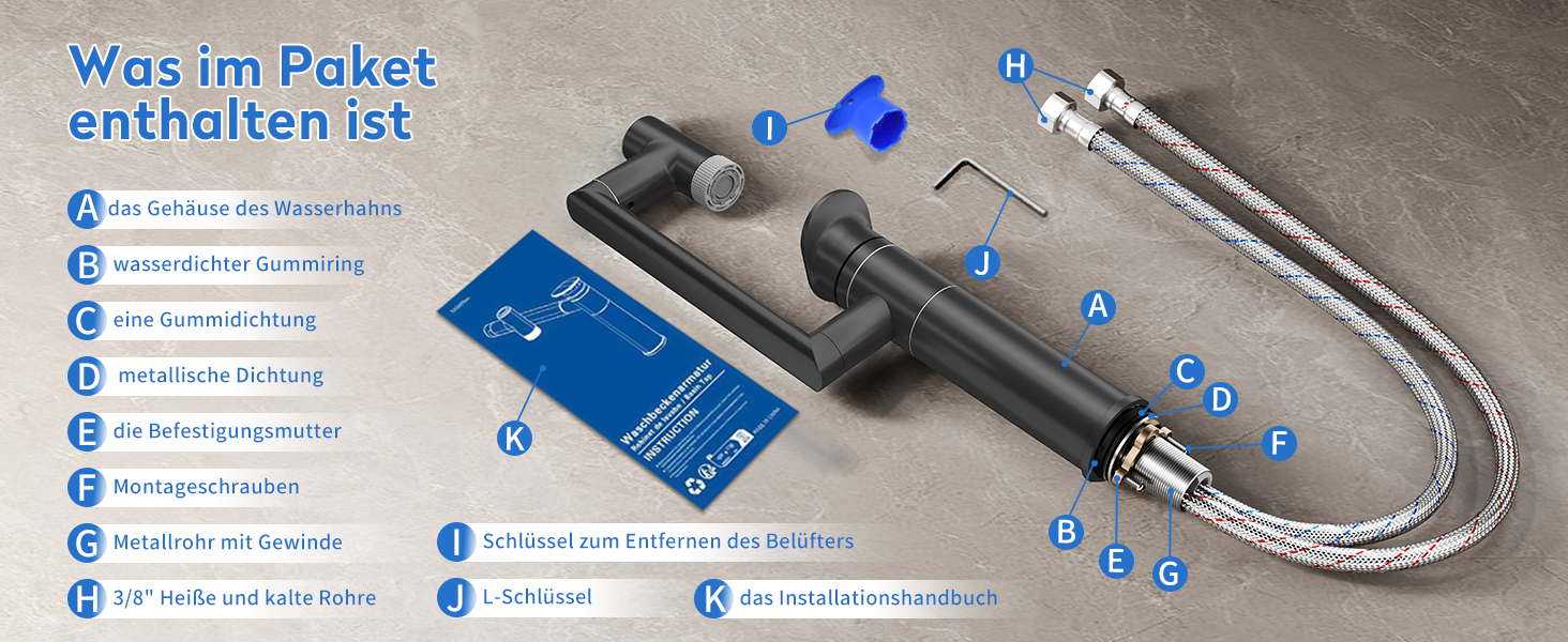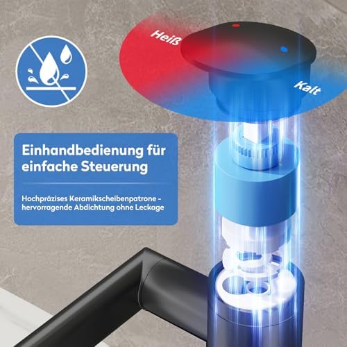• Modernes Design: Stilvolle Armatur, die jedem Badezimmer ein modernes Flair verleiht und gleichzeitig funktional ist.
