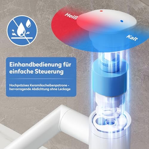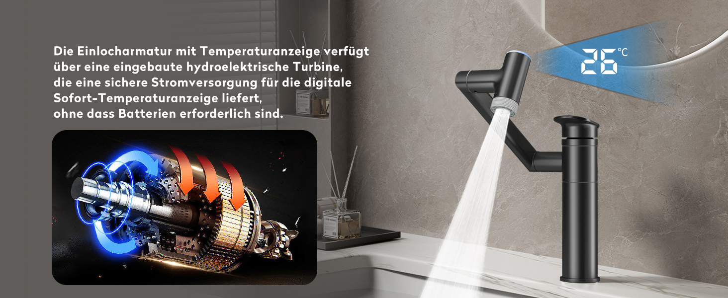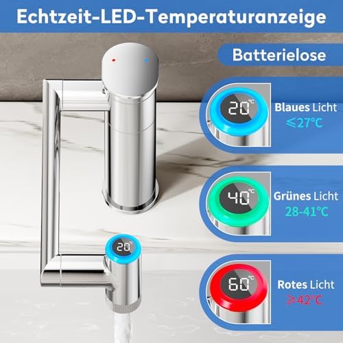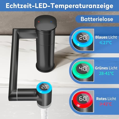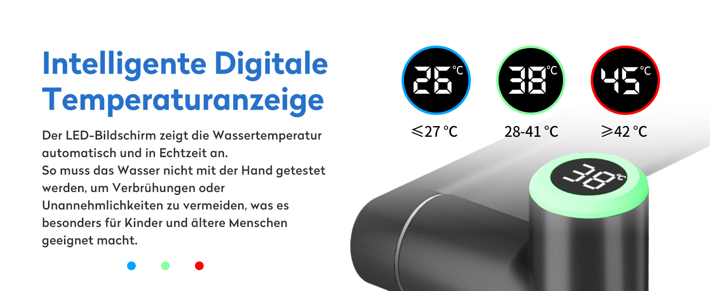 • Echtzeit Temperaturanzeige: Batterielose LED-Anzeige, die Wassertemperaturen in Echtzeit zeigt, schützt vor Verbrühungen.
