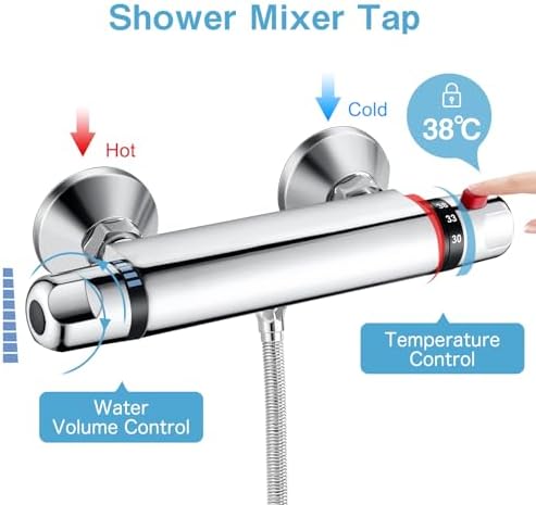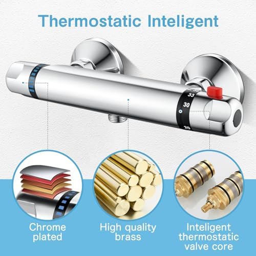 Laiton Duscharmatur mit Thermostat – Brausethermostat für sicheres Duschen bei 38 °C