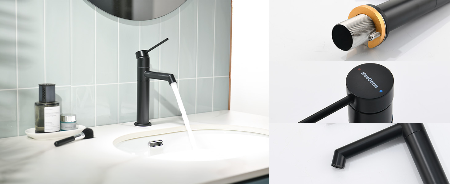 Das elegante Erscheinungsbild des Waschbeckenhahns wird durch die glatte, lackierte Oberfläche unterstrichen, die nicht nur attraktiv ist, sondern auch die Reinigung erleichtert. Der hochwertige Abschluss sorgt dafür, dass der Hahn auch nach intensiver Nutzung immer gut aussieht und Sie lange Freude daran haben.