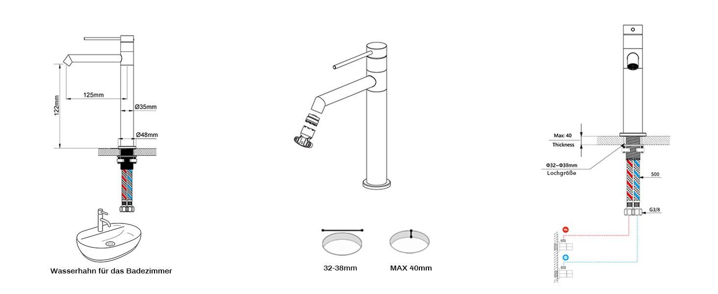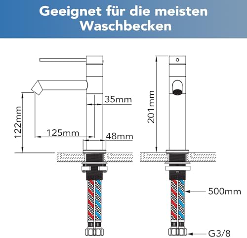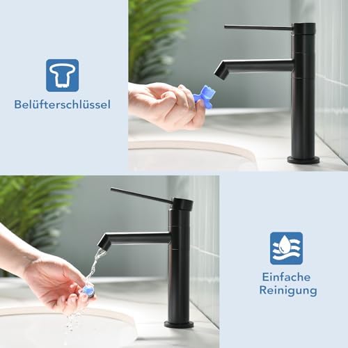 Die Installation des Waschbeckenhahns ist mühelos und kann auch von weniger erfahrenen Personen problemlos vorgenommen werden. Dank der mitgelieferten Montageanleitung und des standardmäßigen 3/8 Zoll Zulaufschlauchs ist der Einbau schnell realisiert. So können Sie im Handumdrehen die Vorteile dieses modernen Badhahns genießen.