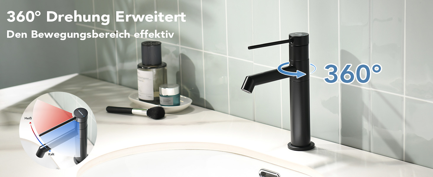 Dank des 360° drehbaren Auslaufs ermöglicht dieser Waschbeckenhahn eine flexible Nutzung. Ob Sie das Wasser für das Händewaschen oder das Ausspülen von Utensilien benötigen, die reibungslose Bedienung wird durch den hochwertigen Keramikventilkern gewährleistet. So gehören tropfende Wasserhähne der Vergangenheit an – genießen Sie eine zuverlässige und essenzielle Funktionalität.