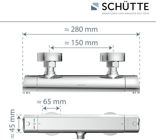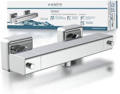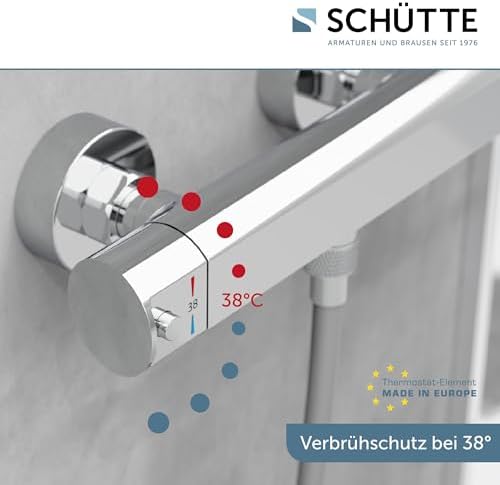 SCHÜTTE 52485 SIGNO Thermostat Duscharmatur mit Verbrühschutz, elegante Chrom-Mischbatterie für sicheres DuschenSCHÜTTE 52485 SIGNO Thermostat Duscharmatur mit Verbrühschutz, elegante Chrom-Mischbatterie für sicheres Duschen