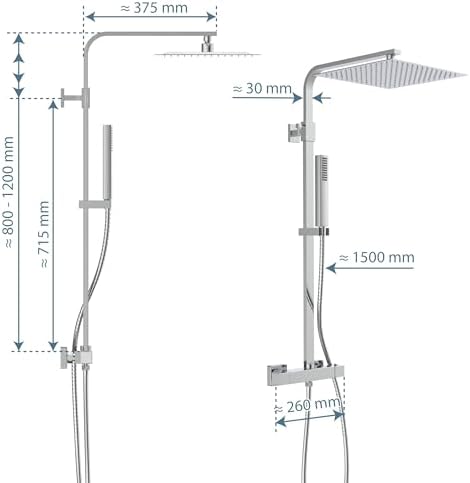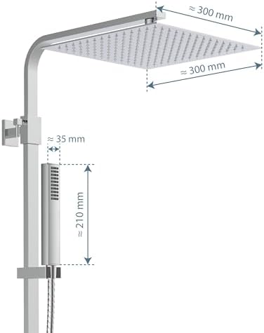 Erfreuen Sie sich an unserem umfassenden Duschset, bestehend aus einem eleganten Edelstahl-Duschkopf mit einer Größe von 30×30 cm, einer handlichen Handbrause, einer höhenverstellbaren Duschstange sowie sämtlichem Montagematerial. Dieses Set garantiert Ihnen ein modernes Duscherlebnis und einen stilvollen Look in Ihrem Badezimmer.