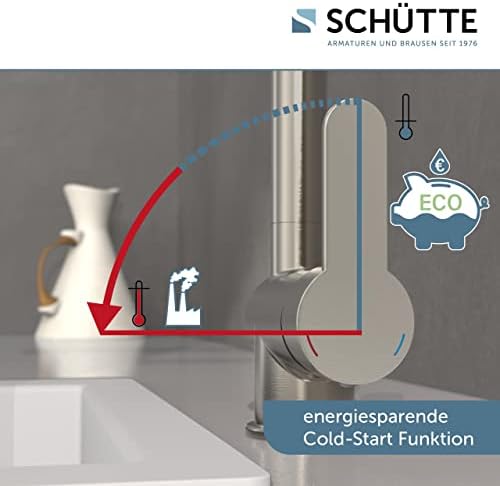 Ein besonderes Merkmal dieser Brause ist die Hebel-Mittelstellung, die es ermöglicht, dass ausschließlich Kaltwasser fließt. Dies ist nicht nur umweltfreundlich, sondern hilft auch, Energie zu sparen. Durch die Reduzierung des Warmwasserverbrauchs wird zudem der Verschleiß an Durchlauferhitzern und Spültischarmaturen erheblich vermindert.