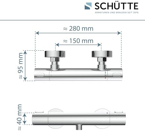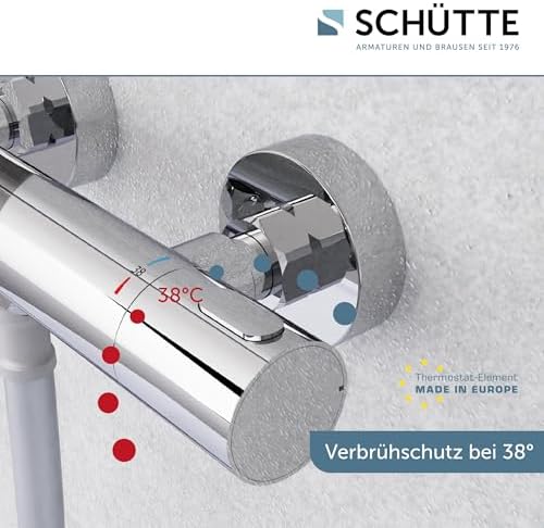 SCHÜTTE Los Angeles Thermostat Duscharmatur – Brausethermostat mit Verbrühschutz bei 38℃ für sicheres Duschen in ChromSCHÜTTE Los Angeles Thermostat Duscharmatur – Brausethermostat mit Verbrühschutz bei 38℃ für sicheres Duschen in Chrom