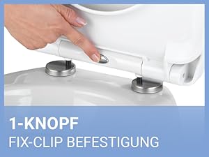 Die unkomplizierte 1-Knopf Fix-Clip Hygiene Befestigung aus rostfreiem Edelstahl ermöglicht eine schnelle und sichere Anbringung. Der Sitz verrutscht nicht und kann bei Bedarf leicht abgenommen und gereinigt werden. Die Möglichkeit, den kompletten Sitz abzunehmen, erleichtert Ihnen die Reinigung und sorgt für eine hygienische Nutzung.