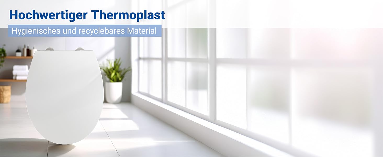 Thermoplast ist ein langlebiges Material, das sich mühelos mit einem weichen Tuch reinigen lässt. Darüber hinaus ist der gesamte Toilettensitz recycelbar und spielt somit eine wichtige Rolle beim Umweltschutz. Eine nachhaltige Wahl für jeden Haushalt!
