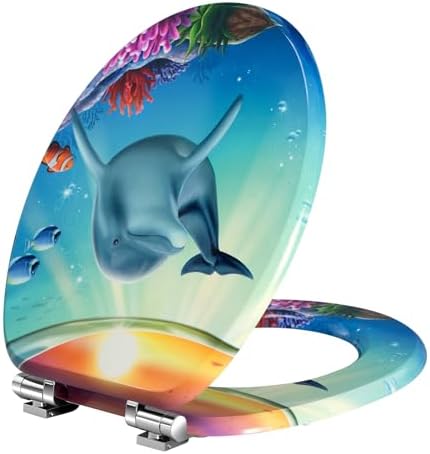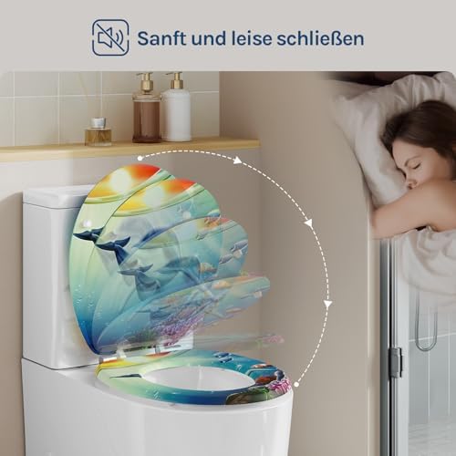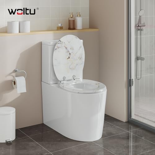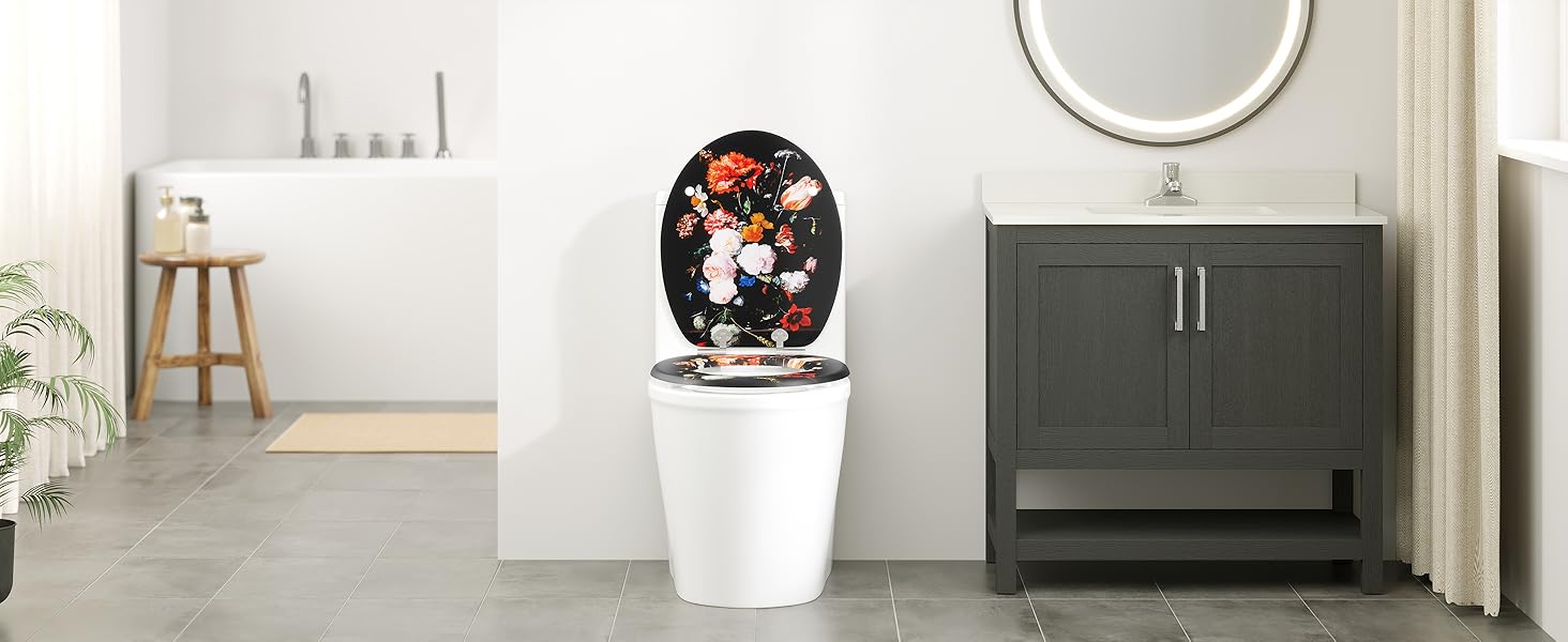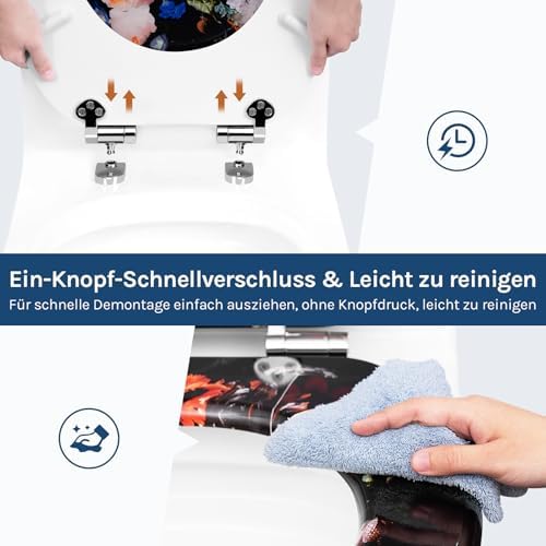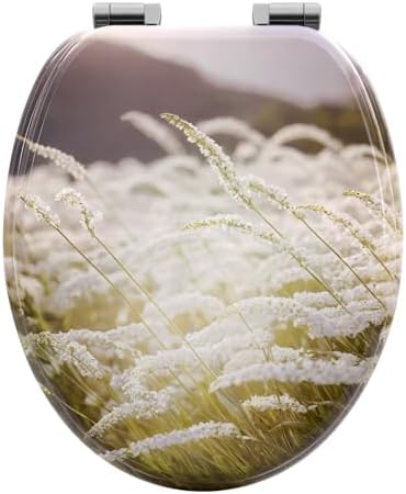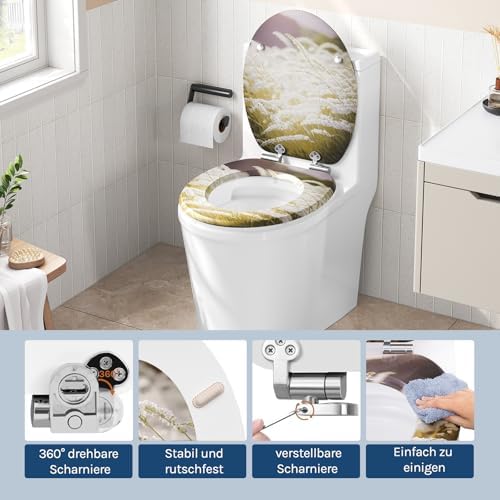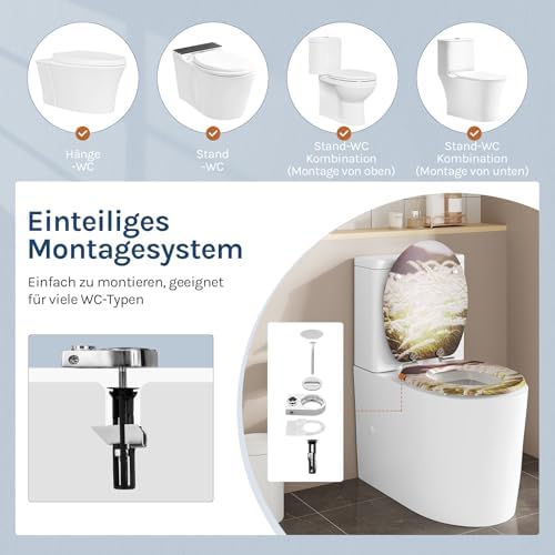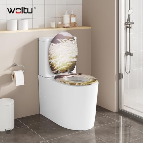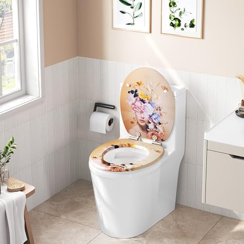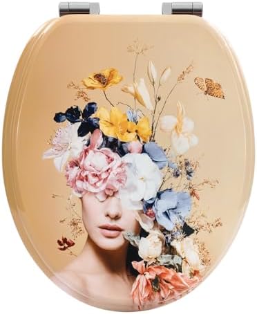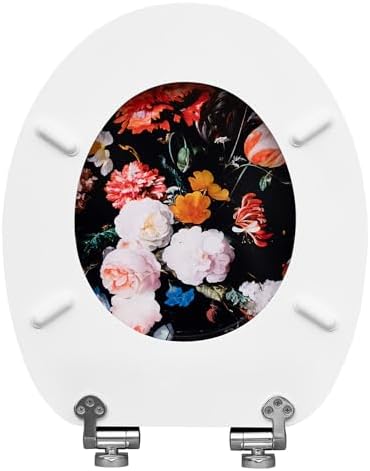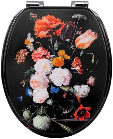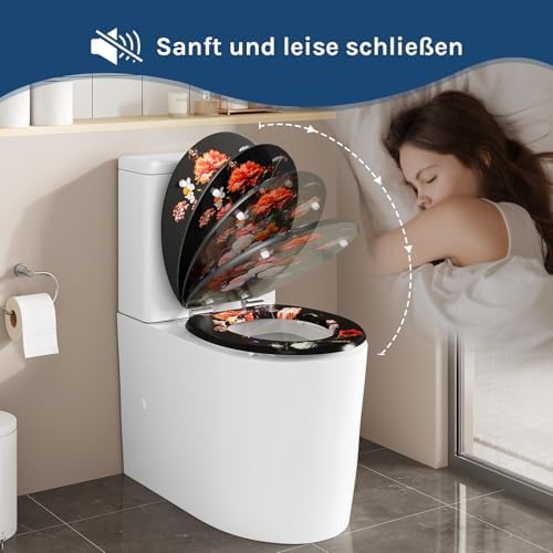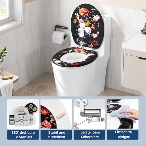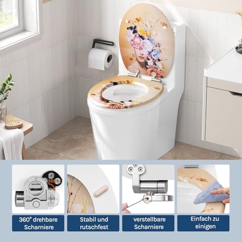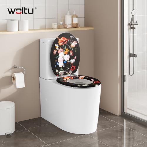 WOLTU Toilettendeckel Holz mit Absenkautomatik, Blumen Motiv, O-Form – Einfach zu reinigender Klodeckel für stilvolles BWOLTU Toilettendeckel Holz mit Absenkautomatik, Blumen Motiv, O-Form – Einfach zu reinigender Klodeckel für stilvolles B