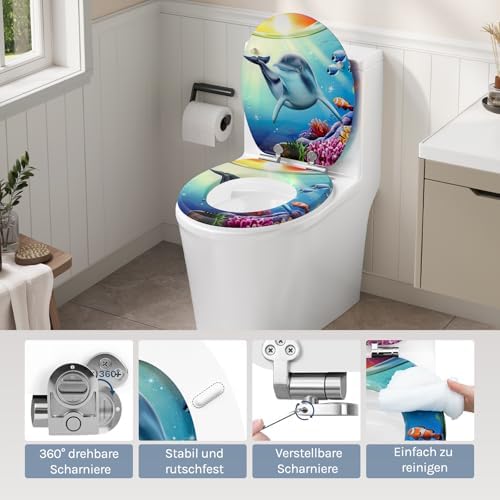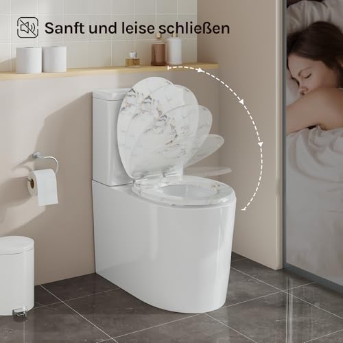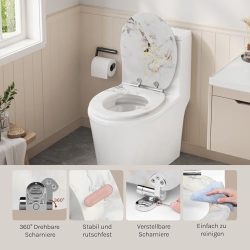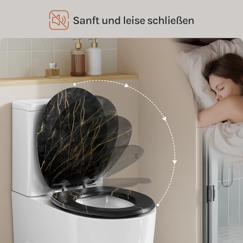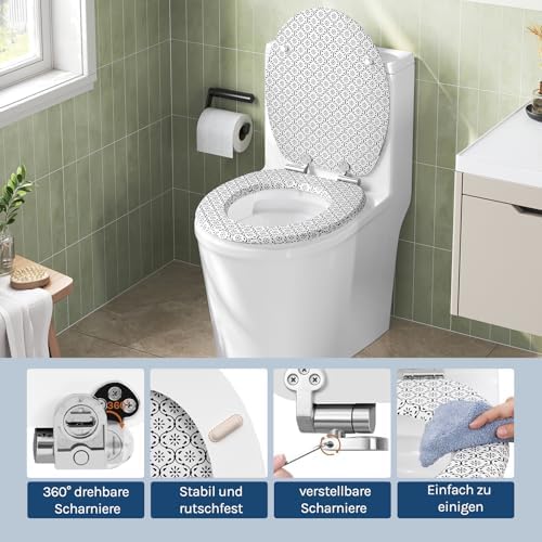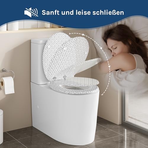 • Stilvolles Design: Der Toilettensitz bietet dekorative Motive, die jedem Badezimmer eine elegante Note verleihen und das Bad zu einem gemütlichen Raum machen.