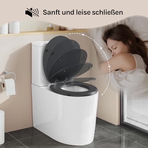 • Innovative Absenkautomatik: Mit dieser Technologie schließt der Toilettendeckel sanft und geräuschlos, perfekt für eine ruhige Umgebung, insbesondere nachts.